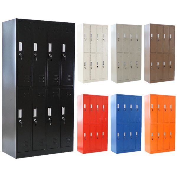 送料無料 ロッカー おしゃれ スチールロッカー 8人用 選べるカラー 鍵付き スペアキー付 4列2段 スチール製 収納 オフィス 事務所 会社 業務用 オフィスロッカー スチールキャビネット オフィス用品 スリム かぎ付き 更衣ロッカー 八人用 8枚扉 シリンダー錠 sy208d185