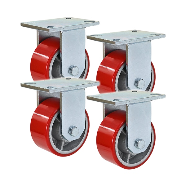 送料無料 キャスター 固定キャスター 重量用 PU製 4個セット 重量用キャスター 耐荷重約1200kg(1個あたり) 車輪直径約151mm 幅約76mm グリスニップル付き 固定車 PU車輪 ポリウレタン 工場 倉庫 作業 運搬 cstrpufi060r4p