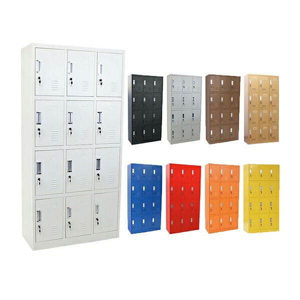送料無料 ロッカー おしゃれ スチールロッカー 12人用 選べるカラー 鍵付き スペアキー付き 3列4段 スチール製 収納 オフィス 事務所 会社 店舗 病院 学校 業務用 スリム かぎ付き 更衣ロッカー 更衣室 オフィスロッカー スチールキャビネット 10-012 |