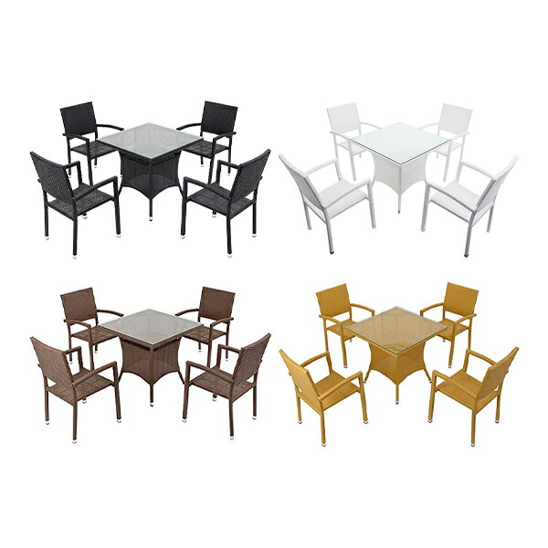 送料無料 ガーデンチェア ガーデン チェア ラタンチェア ラタン テーブル ラタンテーブル 人工ラタンチェア4脚 四角テーブル1台 5点セット 強化ガラス 選べるカラー 籐 肘掛け付き 家具 ファニチャー インテリア スタッキングチェア リビングバルコニー 庭 rattan4565t5set |