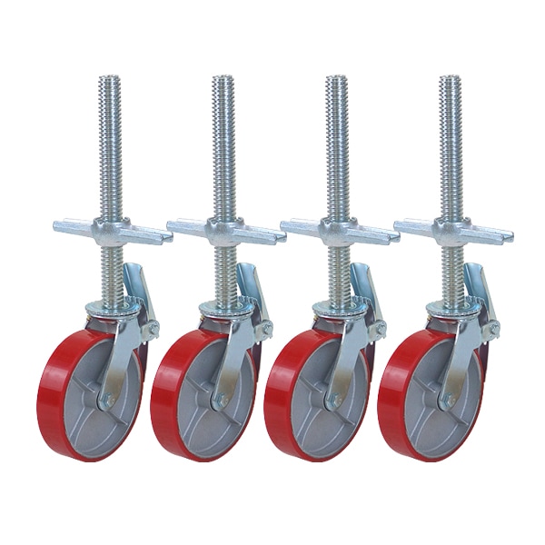 送料無料 キャスター 足場キャスター ジャッキキャスター 自在キャスター 重量用 PU製 ストッパー付き 4個セット 重量用キャスター 耐荷重約280kg(1個あたり) 車輪直径約200mm 幅約50mm 自在車 PU車輪 ポリウレタン ジャッキ付き ローリングタワー 高さ調整 scacs80pus51p4p
