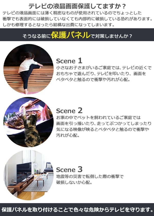 ■保護パネルの厚みは約3mmあるので様々な衝撃からテレビを守ります。