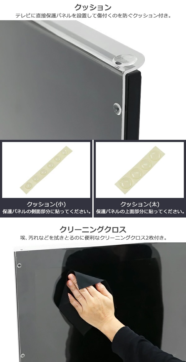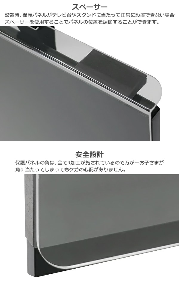 ・液晶テレビ上部に操作スイッチ等がある場合、保護パネルが操作部分に干渉する恐れがございますのでご注意ください。