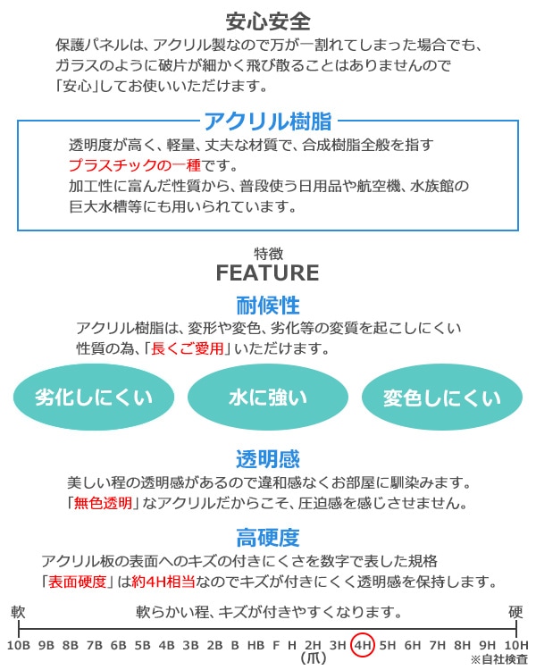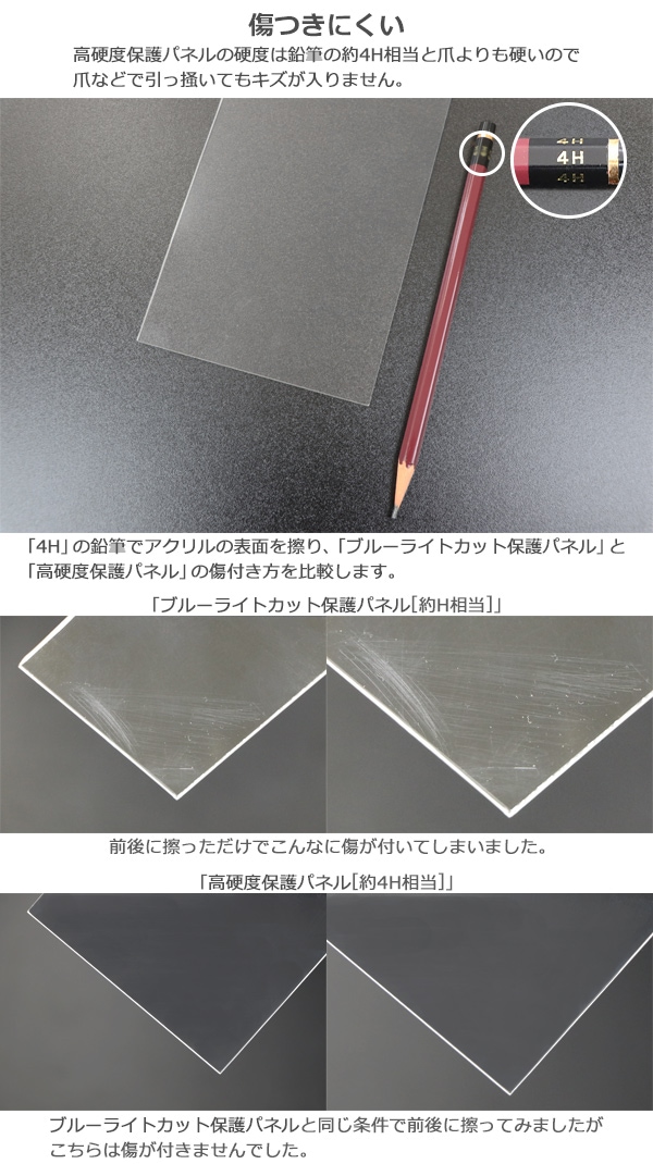 ■パネルの硬度は鉛筆の約4H相当と爪よりも硬いのでキズが入りにくいです。