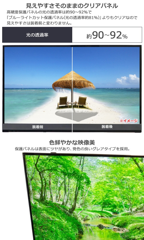 ■保護パネルは表面にツヤがあり発色の良いグレアタイプを採用しています。