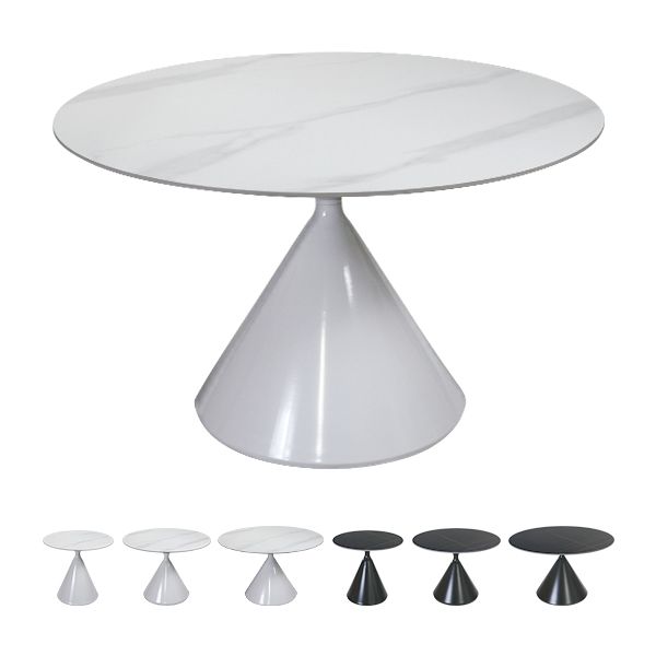 高級感があり高強度のセラミック素材天板を使ったラウンド形ダイニングテーブル ダイニングやリビングにも モダンで個性的なアイアン脚 黒 白 マット