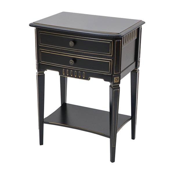送料無料 ロココ調 サイドテーブル ブラック 約W60×約D42×約H82.3(cm) 木製 ロココ アンティーク クラシック レトロ ヨーロピアン エレガント 電話台 花台 飾り棚 ナイトテーブル 机 スリム 棚板付 インテリア 家具 寝室 ディスプレイ リビング おしゃれ 黒 rococof506bk